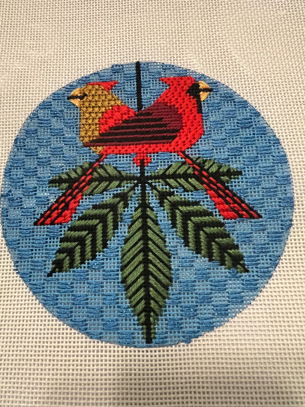 My recent purchase of the Cardinal Ornament Kit with Online Class was great. The kit was shipped quickly. Kit materials were good quality with beautiful colors. I was so excited about this purchase that I immediately begin to stitch the canvas